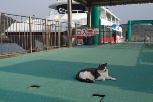 下船するとすぐに猫が寄ってきました。猫好きじゃないおじさんにも(笑)